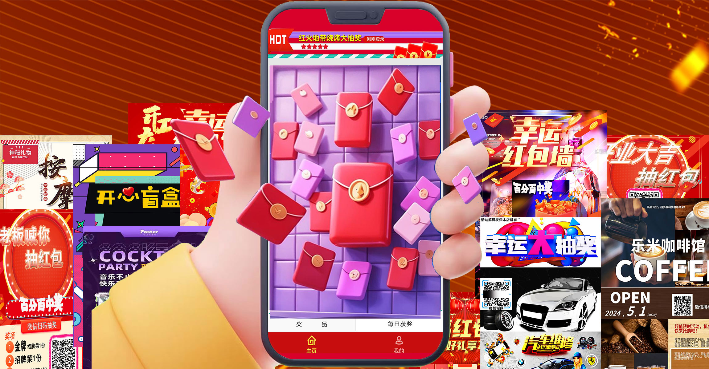 3分钟即可建好自己的红包墙(盲盒墙),比传统的更简单,无损破,无需专人看管。